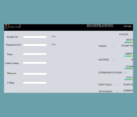 Algorythm Developed a cross-functional desktop application used for maintaining participant databases of college cultural fest, reducing 100% of the manual work of searching and checking participant data. Integrated report generation and MS Excel generation of data to be further evaluated by department heads. Algorythm Code.